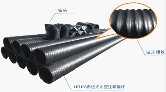 它也是起到支護(hù)作用的,不同的是自帶鉆頭,可以直接鑿孔進(jìn)行作業(yè)。在工序上節(jié)省了環(huán)節(jié),效率較高。缺點(diǎn)是一個(gè)桿體要用一個(gè)鉆頭,鉆頭不能多次使用,會(huì)留在鑿孔里面,成本較高。
